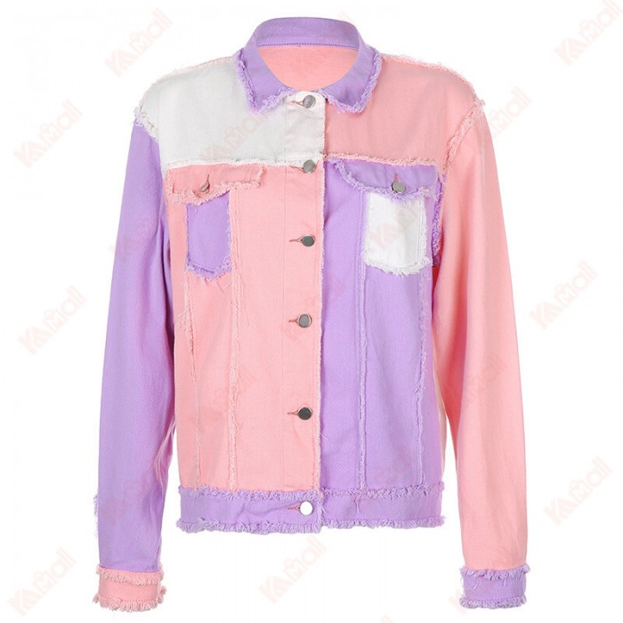 Street Style Pink And Purple Vintage Denim Jacket