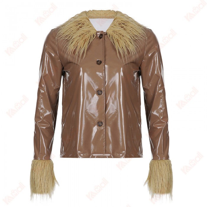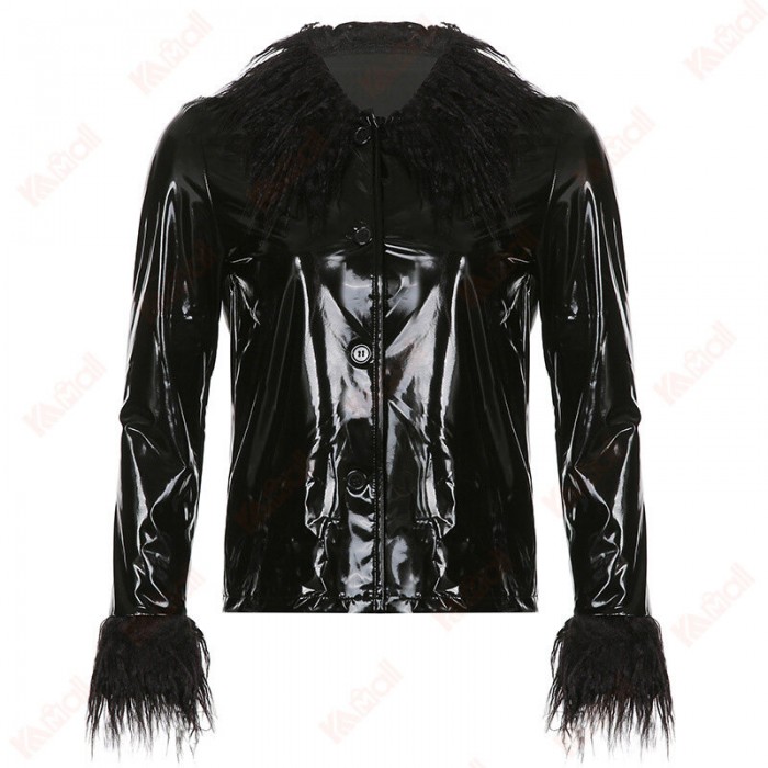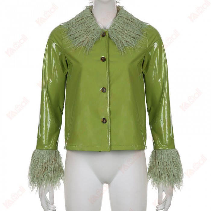 Street Style Green Leather Jacket Cardigan High Quality